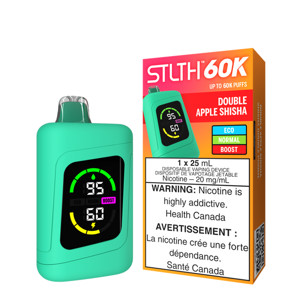 Indulge in the aromatic and sweet taste of STLTH 60k Double Apple Shisha. This ultra-long-lasting disposable vape captures the classic, rich flavour of double apple shisha, offering a sweet and liquorice-like fruit experience with traditional notes.